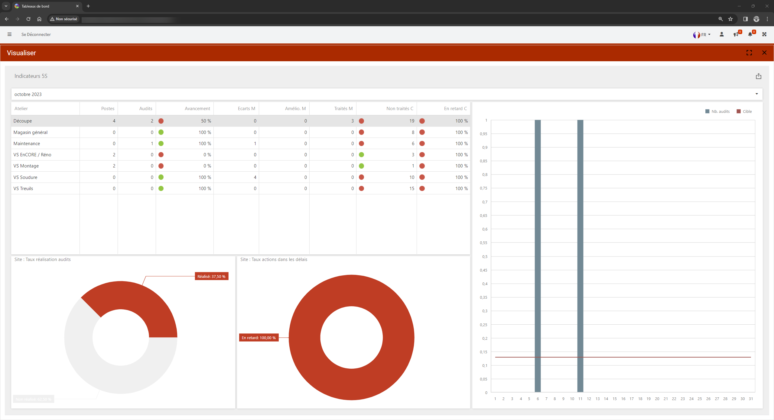 Tableaux de bord partagés pour les chantiers Kaizen.